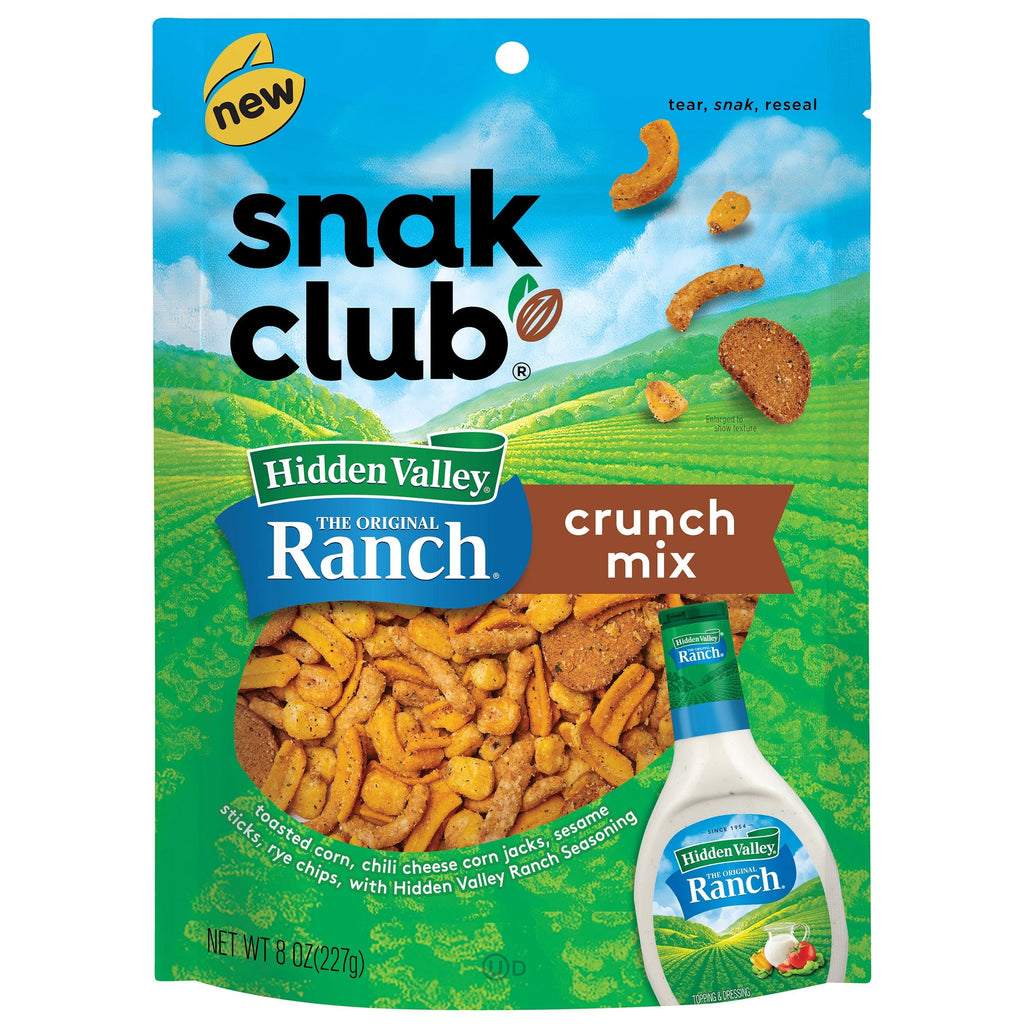 We take your favorite Hidden Valley Ranch seasoning and added it to our delicious Crunch Mix for that perfect crunch and flavor! Snak Club Hidden Valley Ranch Crunch Mix is the perfect mouth-watering snack. The resealable bag maintains freshness while snacking on the go. Snak Club has been expertly crafting seasoned nuts, fruit, trail and snack mix recipes since 1984