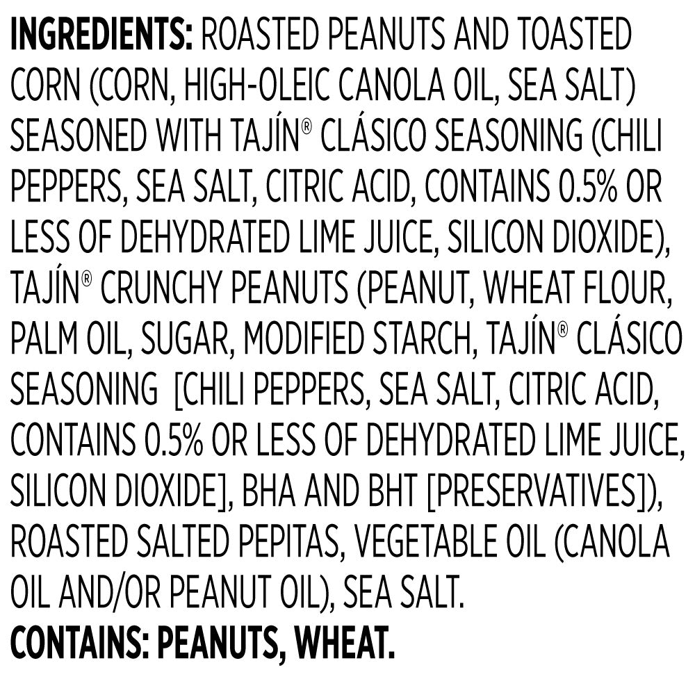 Enjoy nature's best! We take your favorite Tajin Clasico seasoning and add it to our dry roasted & crunchy peanuts, toasted corn and pepitas for that perfect yet mild tang of chili lime flavor! Snak Club Tajin Chili & Lime Flavored Fiesta Snack Mix is the perfect protein, fiber-filled and energy-boosting snack. The resealable bag maintains freshness while snacking on the go. Snak Club has been expertly crafting seasoned nuts, fruit, trail and snack mix recipes since 1984.